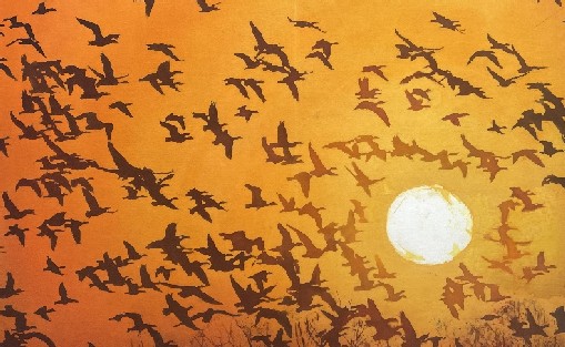 Watch Rosi demonstrating her batik painting Full Flight at Sunset